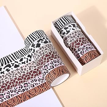 6 Rolls Washis Tape Decorative Tape Animal Print Crafting Tape Craft Supplies for Journals Scrapbooking Wrapping